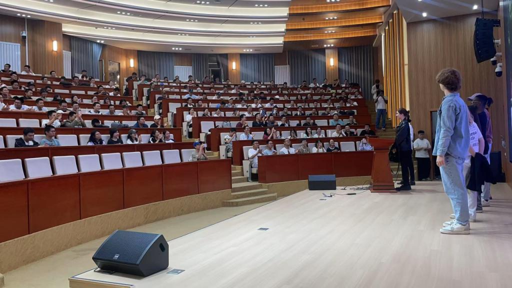 宣讲期间还邀请了几位外籍员工上台做自我介绍。他们用中文或英文分享了本国文化与留学感受,真诚流畅的表达让现场气氛逐渐活跃,也让同学们感受到了不同国家的文化特色。